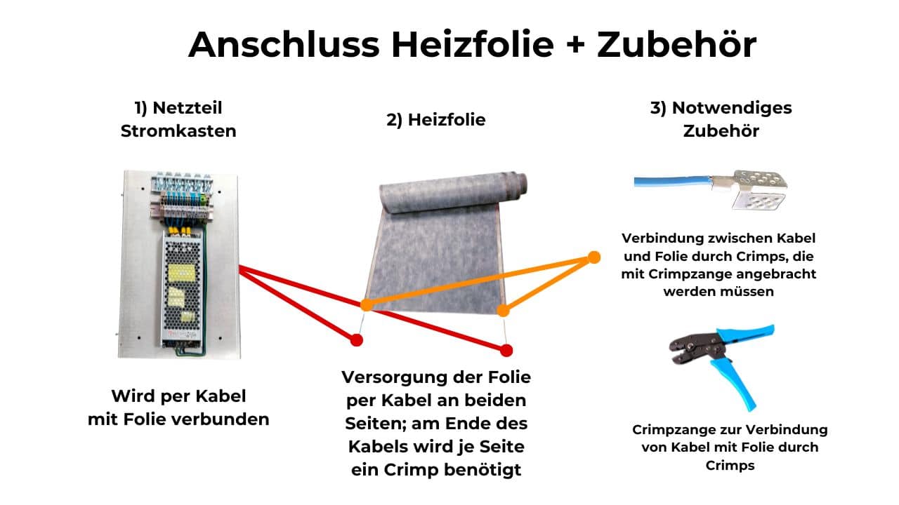 - Prepare the cable: Take the connection crimps and connect them to the cable that leads from the power supply unit in the power box to the heating surface. The cable usually comes from the distribution box, which is usually located in the utility room or a similar area.